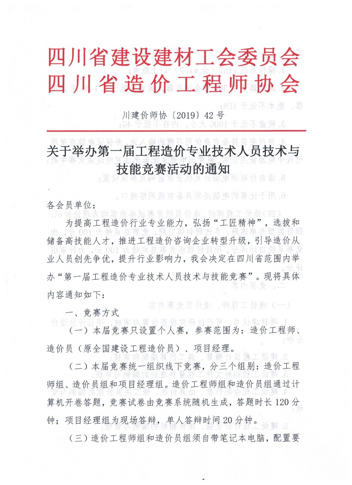 關(guān)于舉辦第一屆工程造價(jià)專業(yè)技術(shù)人員技術(shù)與技能競賽活動的通知